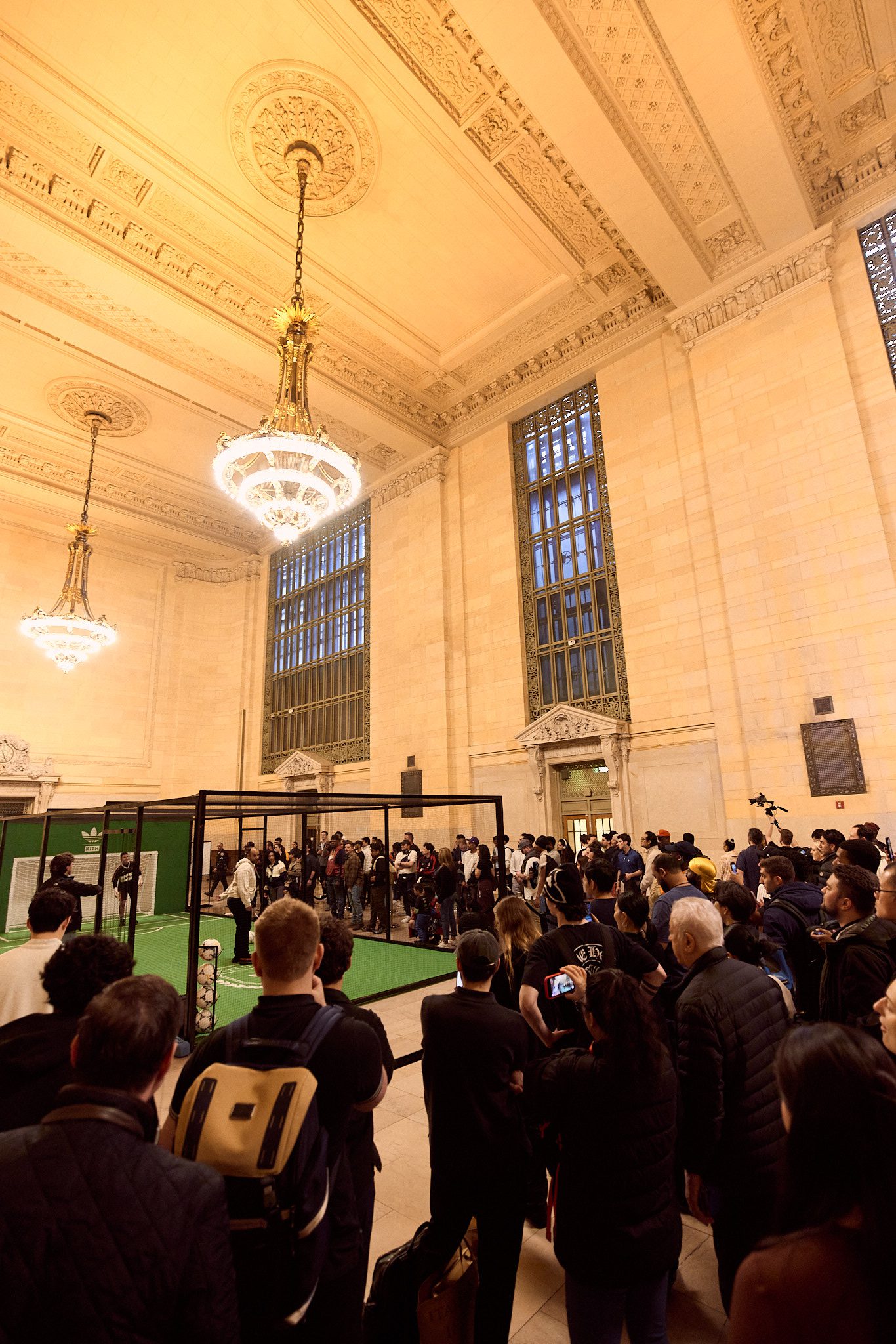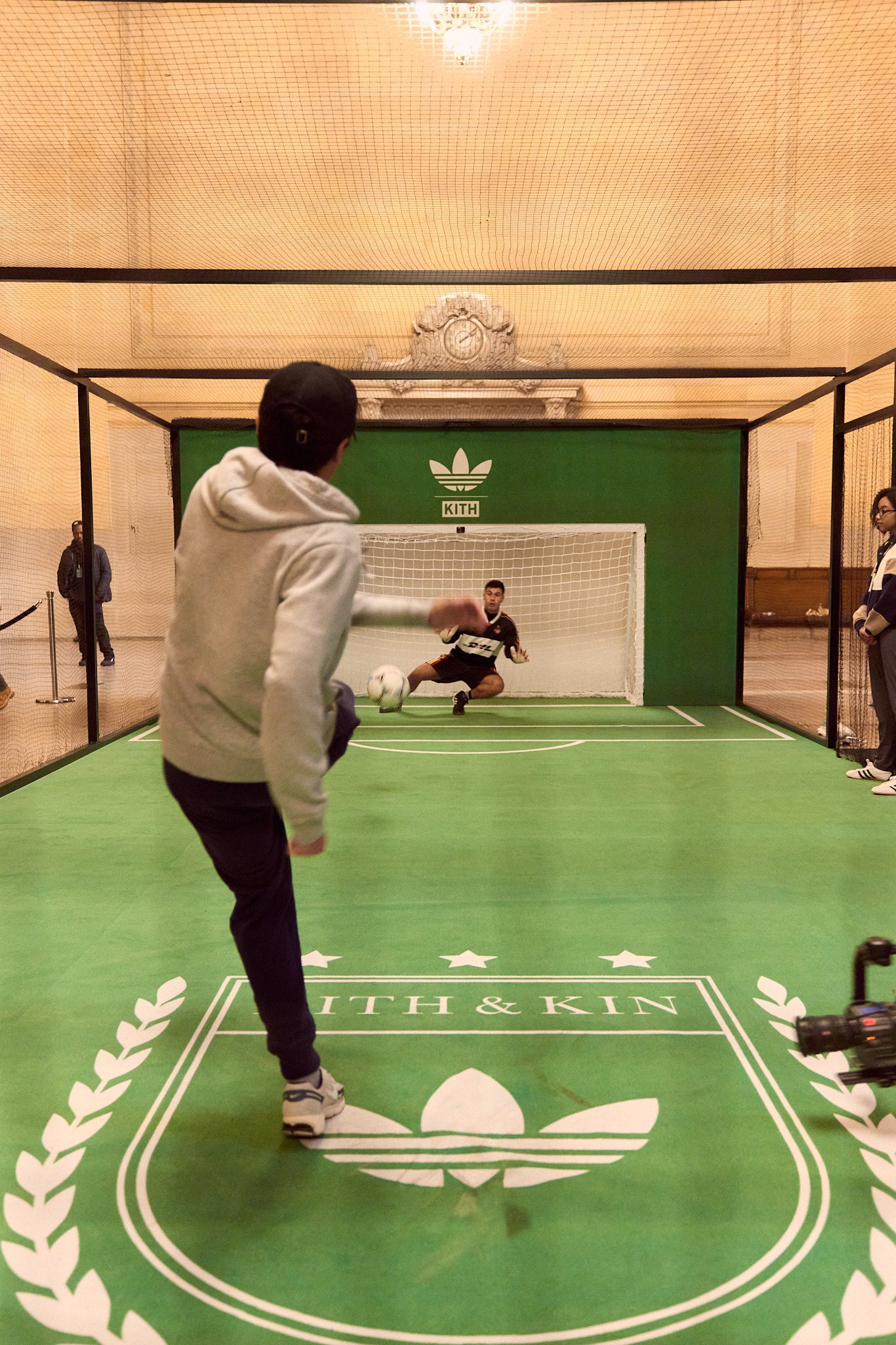 First, we popped-up a unique soccer experience at Vanderbilt Hall inside the iconic Grand Central Station. New Yorkers of all stripes stepped up to the spot inside the purpose-built penalty kick space to shoot their shot and try to put one past the keeper. The reward for success: a pair of unreleased Kith for adidas Football Koresco National sneakers.