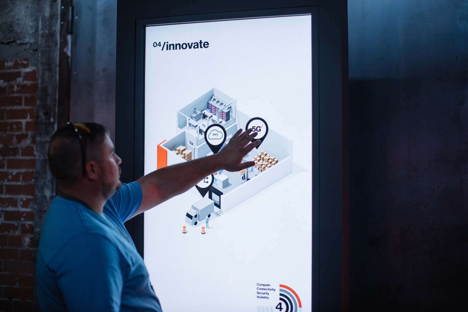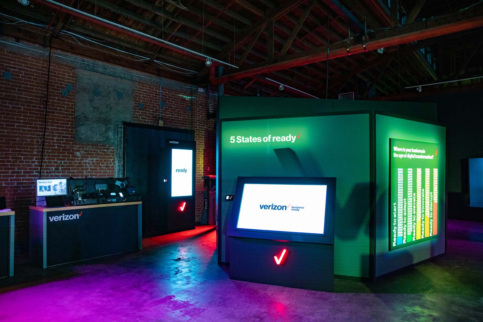 The transformative power of Verizon 5G was demonstrated through a dynamic animation coupled with RFID badge scanning that allowed Verizon to send follow up materials and white papers to hand raisers.