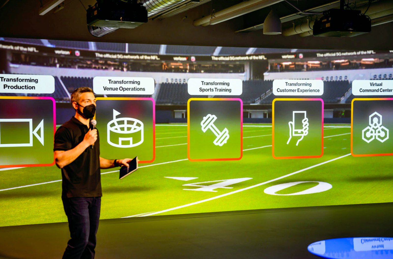 Verizon hosted c-suite customers from Sports & Entertainment verticals to see how the expanded scale of 5G coverage and innovations will transform the sports entertainment experience, influence venue operations, and optimize athlete training.